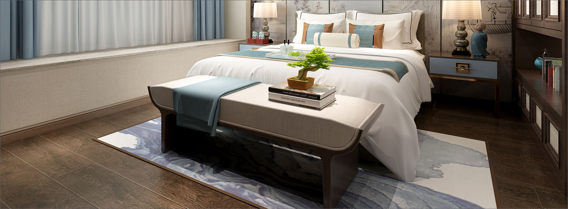 新中式風格是富含千年底蘊的東方中式風格與摩登時尚的現代風格彼此相遇結合,其精華之處在于以“一器一物皆是景,細微之處有乾坤”的古意為出發點,追隨時代的潮流,功能空間相互滲透,色彩空間相互碰撞,消除了傳統中式風格的沉悶和厚重,力圖在惹人癡迷的現代輕奢簡約中彰顯出傳統中式意蘊的雅致逸趣。